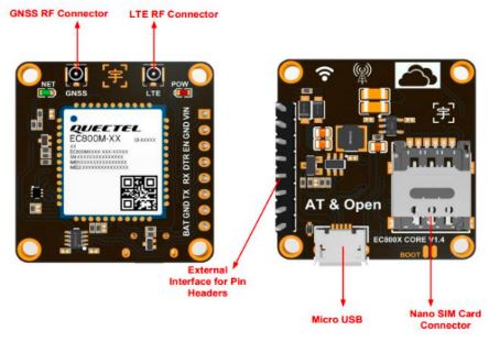 - GNSS: The GNSS function depends on the module model. Taking EC800MCNGA as an example, the core board defaults to using active antennas.